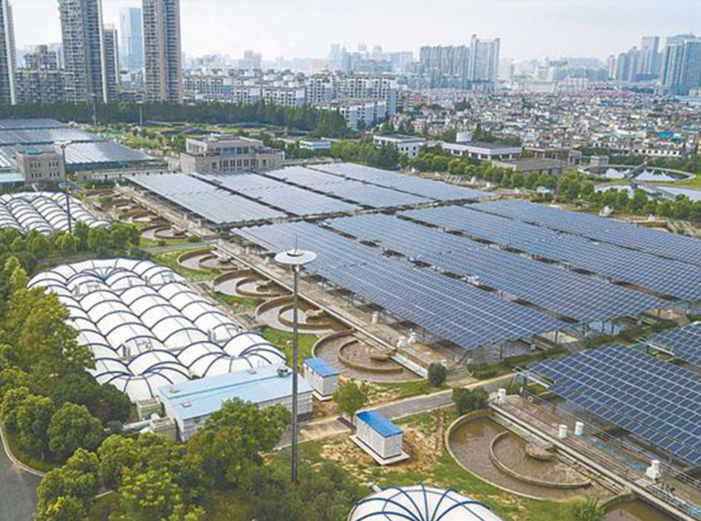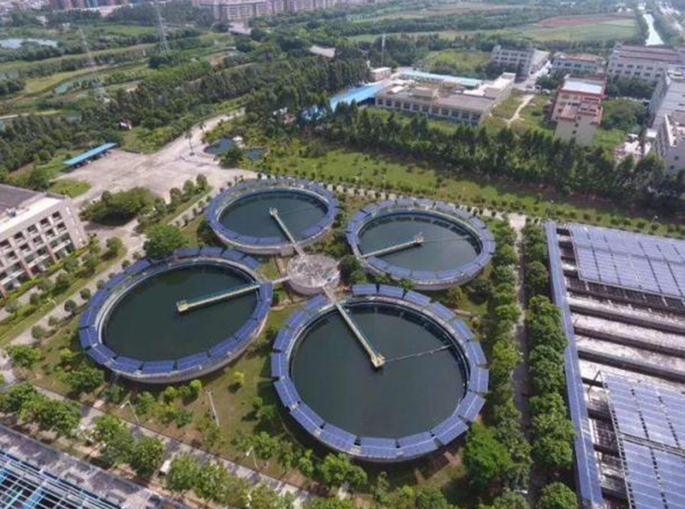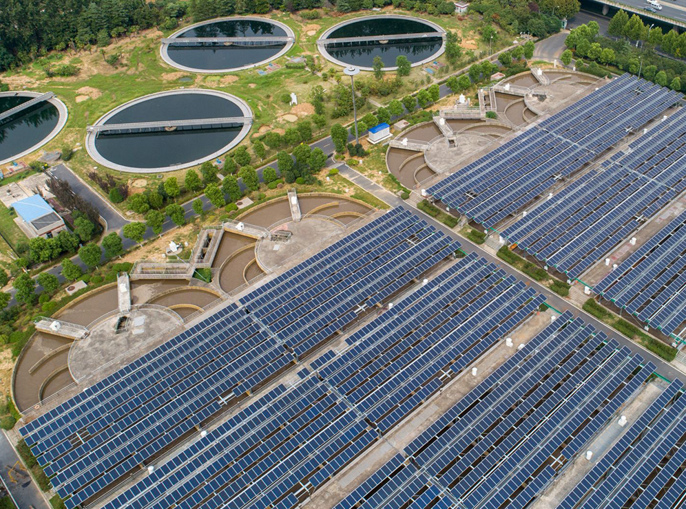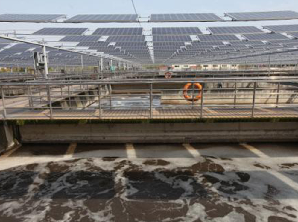 污水處理是高耗能產業(yè),利用城鎮(zhèn)污水處理廠沉淀池、生化池和接觸池的處理水池上及建筑物頂安裝光伏電池方陣進行光伏并網(wǎng)發(fā)電系統(tǒng),所發(fā)電量用于污水處理設備供電,達到節(jié)約能源,降低運營成本的目的。有效節(jié)約土地,提高污水處理廠效益。